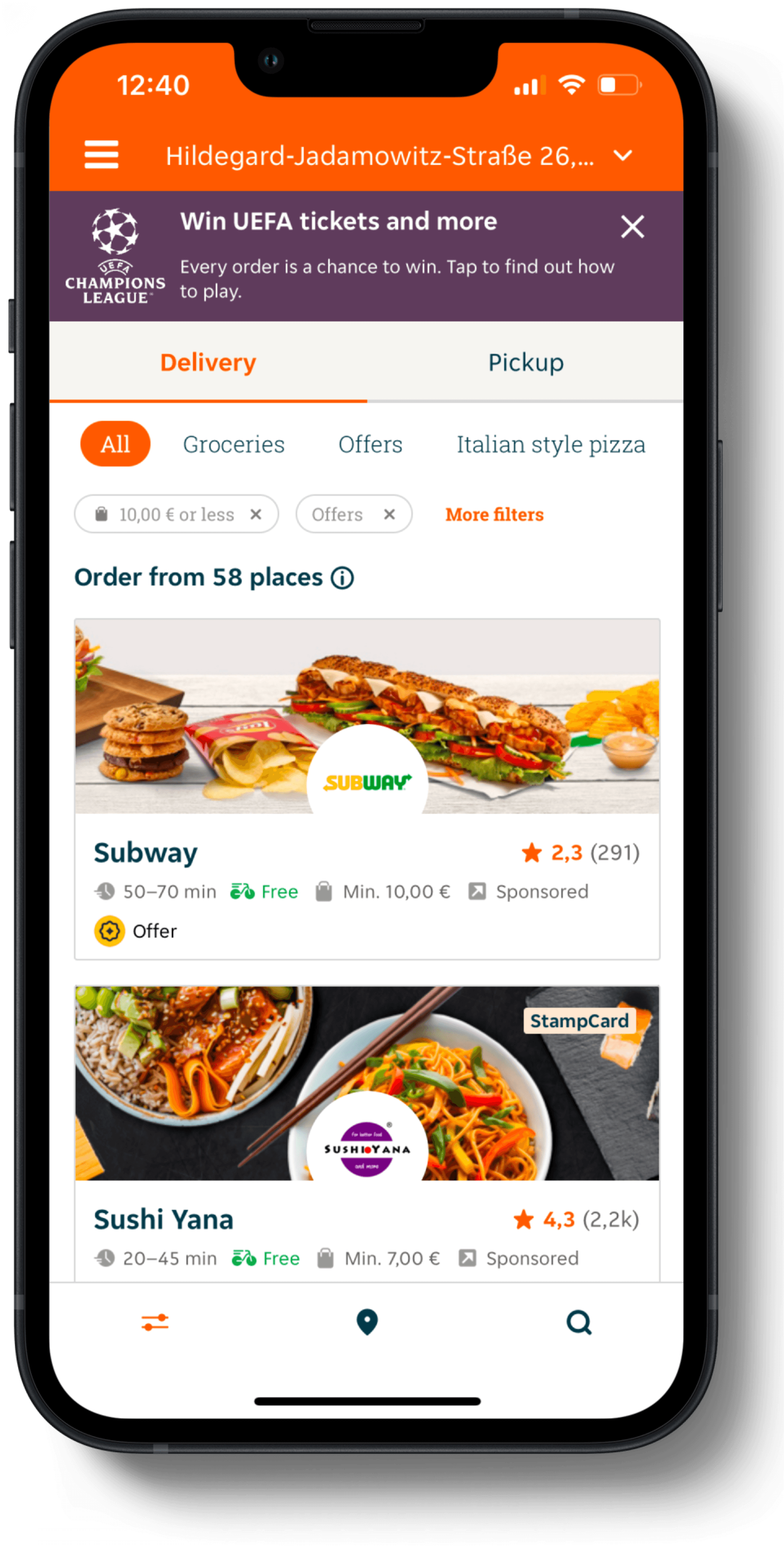 Improved usability of Lieferando